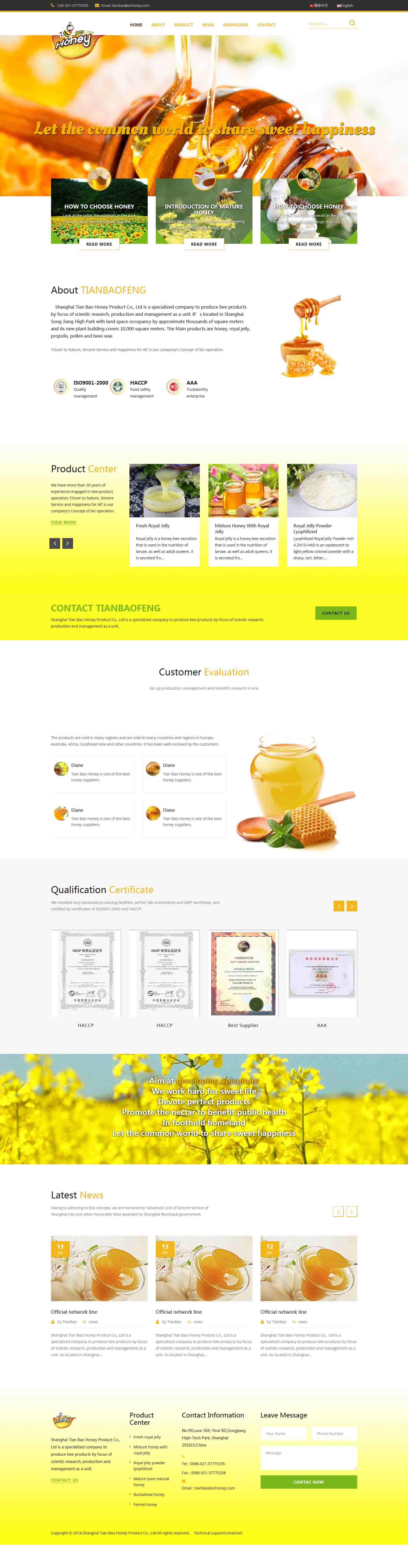 上海天寶蜂產(chǎn)品有限公司創(chuàng)辦于2000年,由有著30余年經(jīng)營蜂產(chǎn)品歷史的沈雪仁先生父子投資興建,集生產(chǎn)、經(jīng)營科研于一體的蜂產(chǎn)品專業(yè)公司。Copyright ? 創(chuàng)世網(wǎng)絡(luò) 版權(quán)所有 浙ICP備15022451號(hào)-1