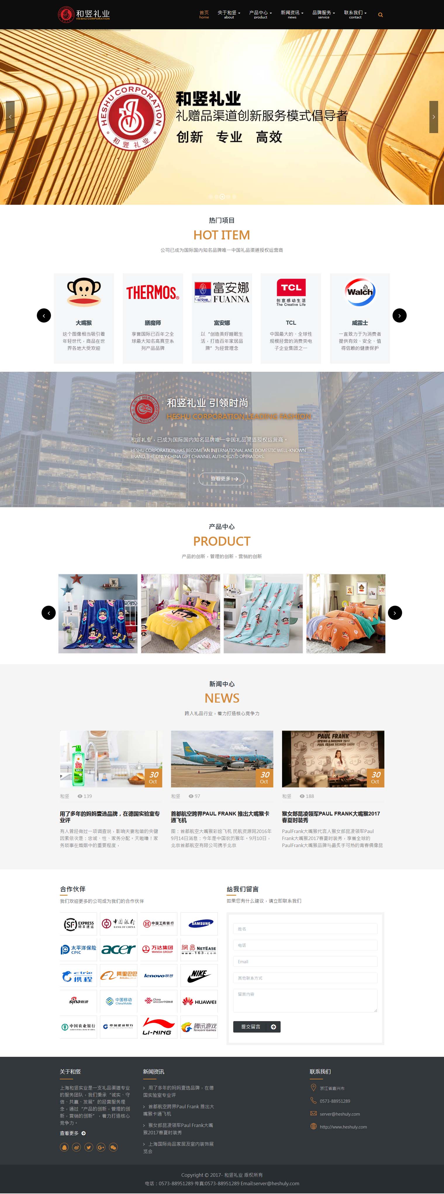 上海和豎實業有限公司,于2013年末成立,跨入禮品行業。 通過兩年堅持不懈的努力,現已成為國內知名的禮品供貨商之一。